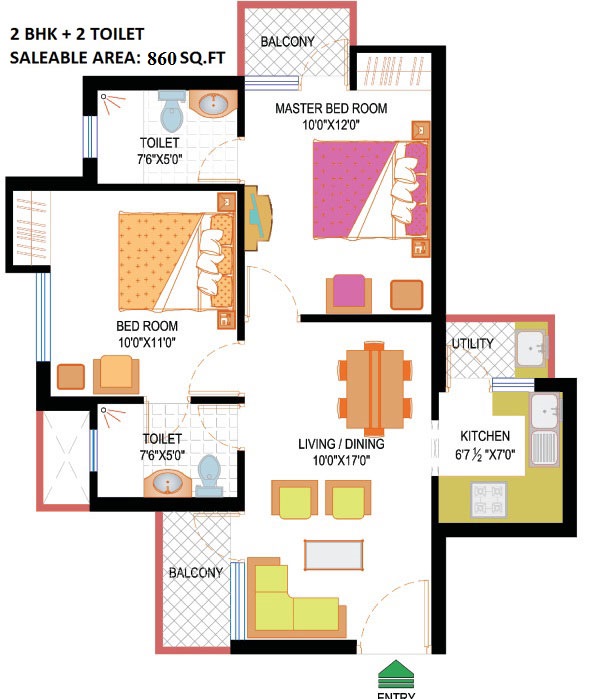 (4800/sq ft)Below 10th View Plan 2 BHK + 2 Toi 860 sq ft 42,14,000