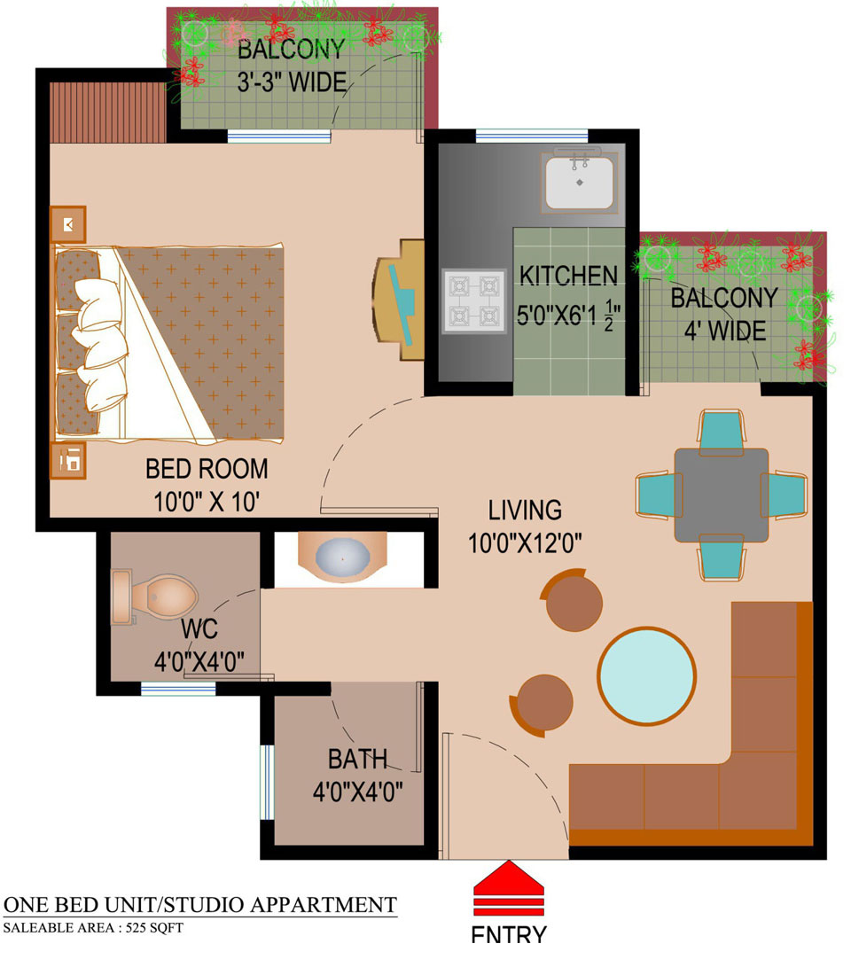 Type Size sq ft) Demand Floor Floor Plan 1 BHK + 1 Toi 525 sq ft 26,51,250