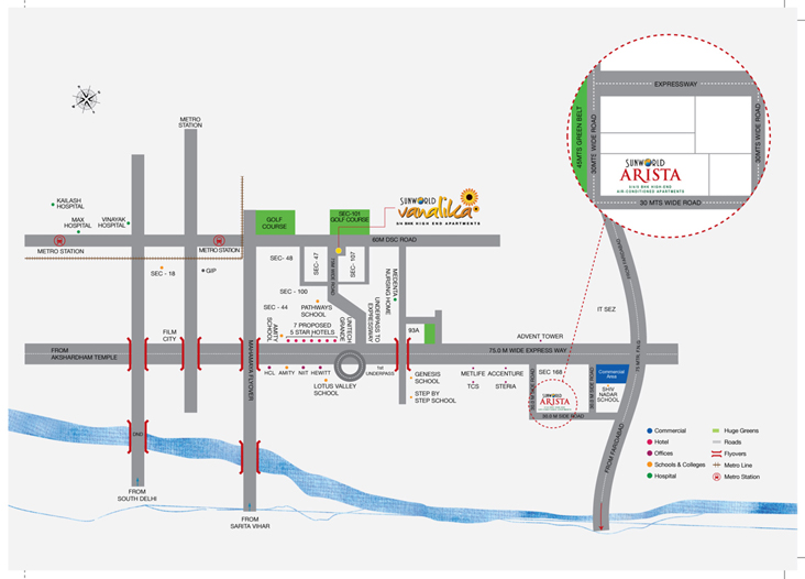 Sunworld Arista is having great advantages of location because of being located in Noida sector 168. This location is providing better facility of transportation and these transportation facilities are available till all the destinations which are located in Noida or located in neighboring cities of Noida. Few minutes’ drive away from entire parts of neighboring cities makes this location easily accessible from all parts of the city. Some of the famous location as pair Chowk and Connaught Place are located 10 to 20 minutes drive away from Arista Noida and South Delhi at 25 minutes drive away. Easy accessible option for this location makes this project very attractive for its customers.