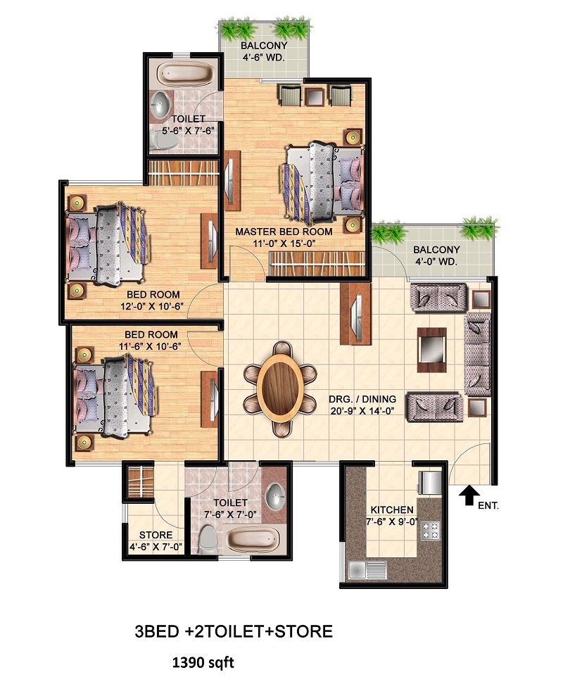 3 BHK + 2T + Store | 1500 Sq-Ft | 71,02,500 | ClickHere |