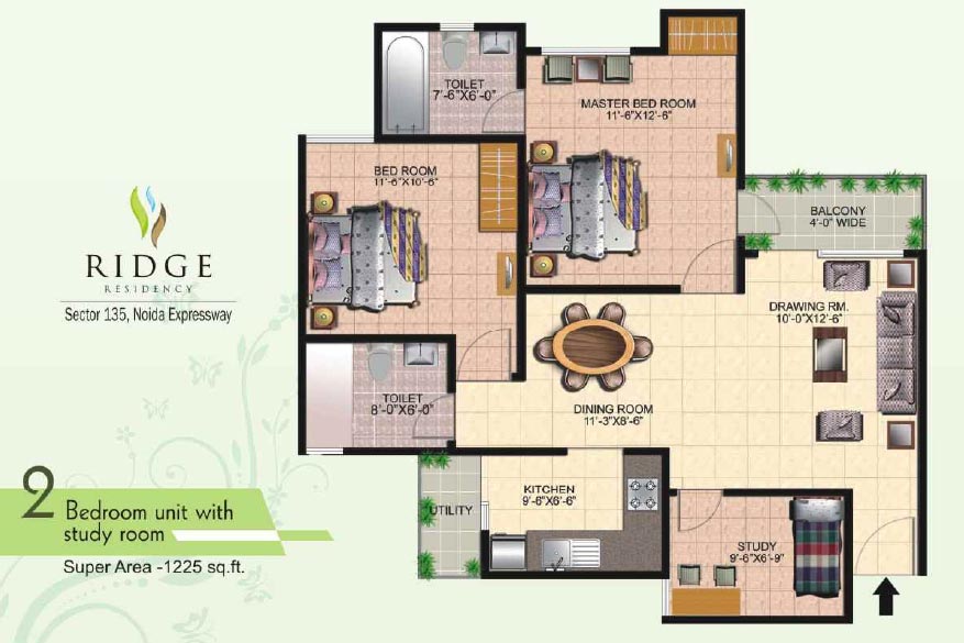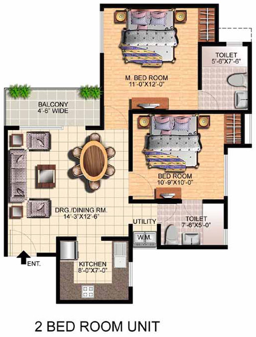 Now “Prop Mudra Real Estate” is offering you 1075 sqft ‘2bhk’ flat in this highly demanded project in which Drawing and Dining area is (16-0*17-6) sqft, Master bed-room is today-ridge-residency-floor-plan-1720sq-ft, second bedroom (10-6*11-6) sqft, Kitchen is (9-6*6-6) sqft and washrooms are (7-3*6-0) sqft. Hence this 2bhk flat has L-shape Drawing and Dining hall which differentiate this layout from any other layout and this living area is connected with balcony too, so guest/resident can directly have view of park/outer location. Although bedroom sizes are bigger and it will have sufficient space after putting bed inside the room. Master bedroom has cupboard space and connected with washroom separately. Second bedroom has again enough space and connected with common washroom separately. Common washroom is attached with Living area and second bedroom to cater guests/visitors without disturbing anyone in the flat. Kitchen is again superbly designed.