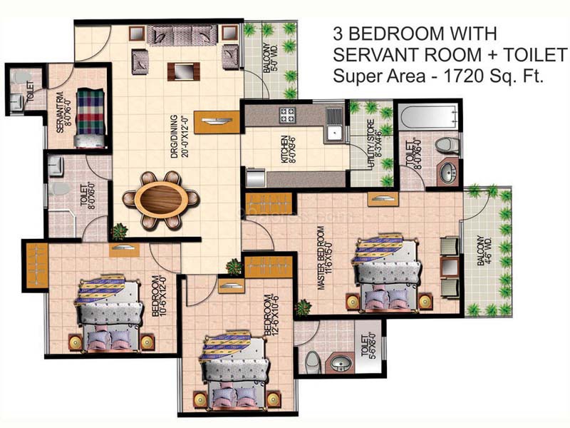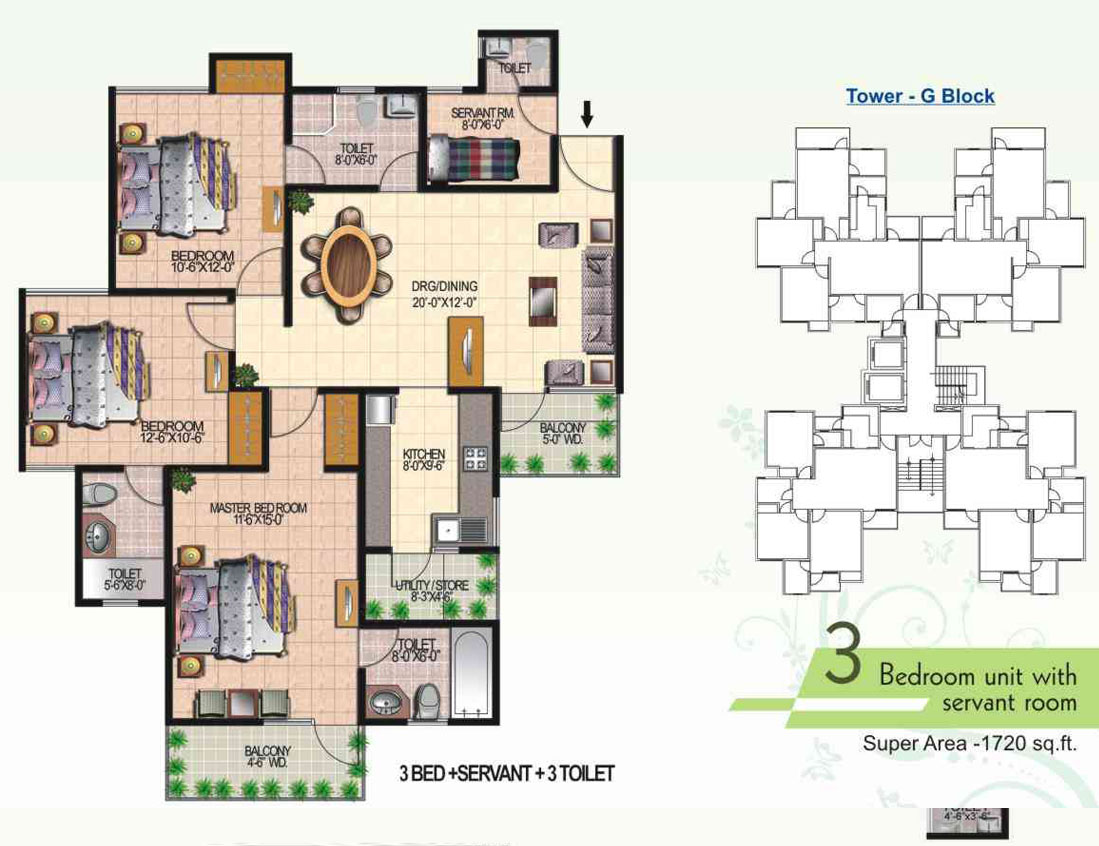 (4400/sq ft)View Plan 3 BHK 1720 sq ft 72,24,000